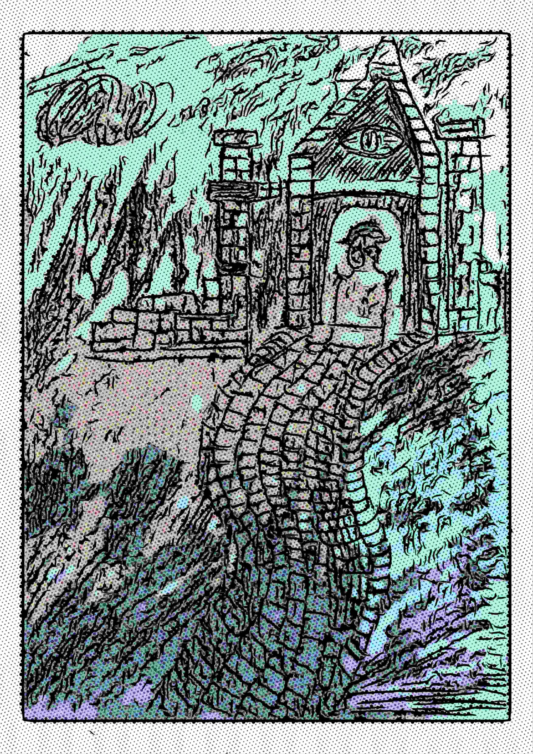 In *Gatekeeper of the Shadow Paths*, we once again encounter the surreal-poetic visual world of LTJ. At the center of the work stands a mysterious portal made of rough stonework, crowned by an all-seeing eye – a symbol of consciousness, control, and hidden truths. The scene is charged with a dark tension: the sky appears stormy, the landscape unreal, almost dreamlike and detached.